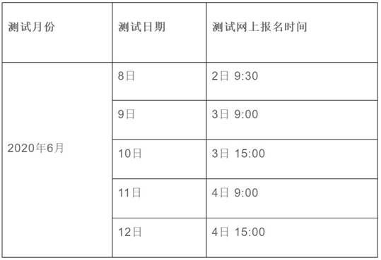 1.報(bào)名及測(cè)試時(shí)間:2020年6月暫無(wú)測(cè)試安排